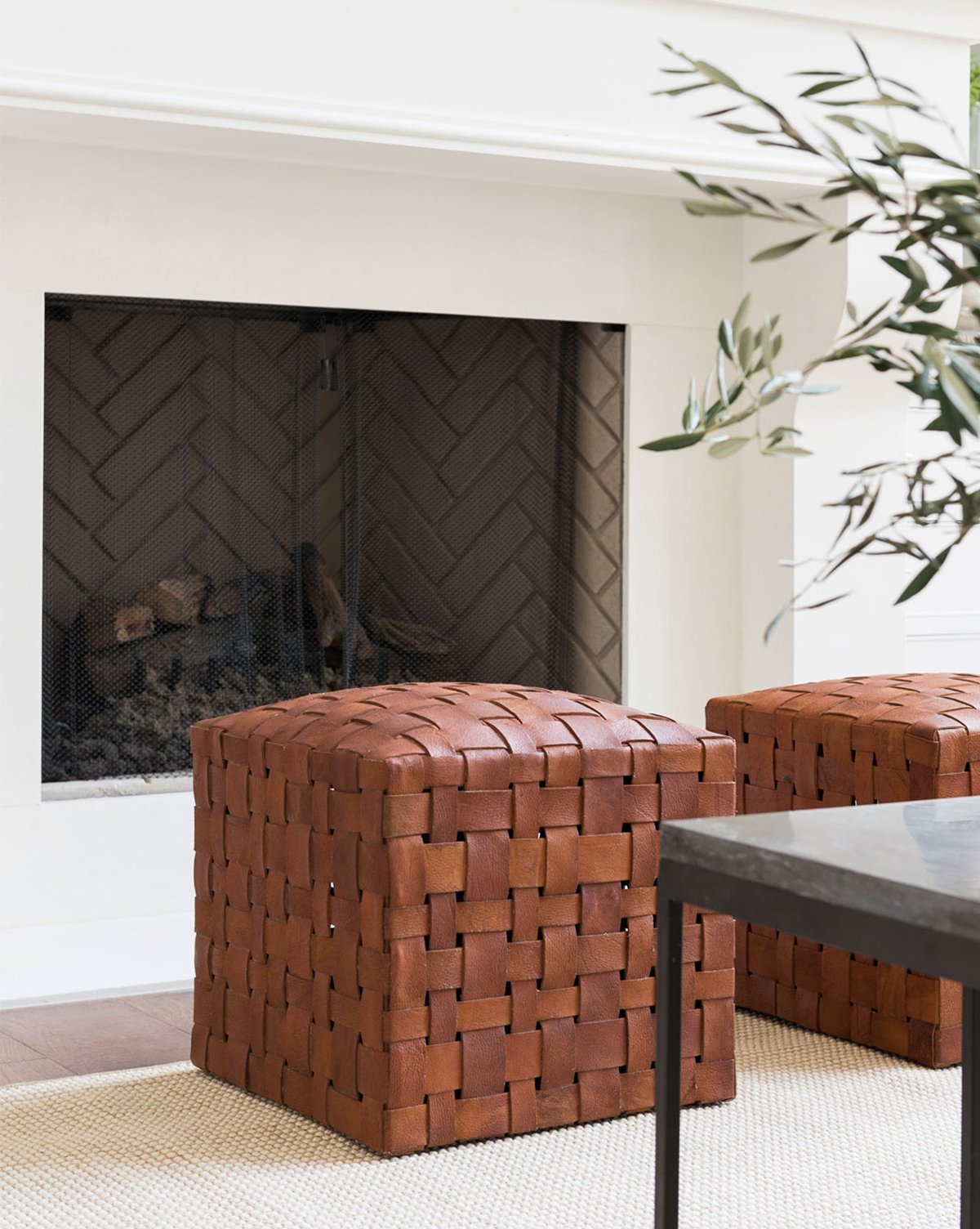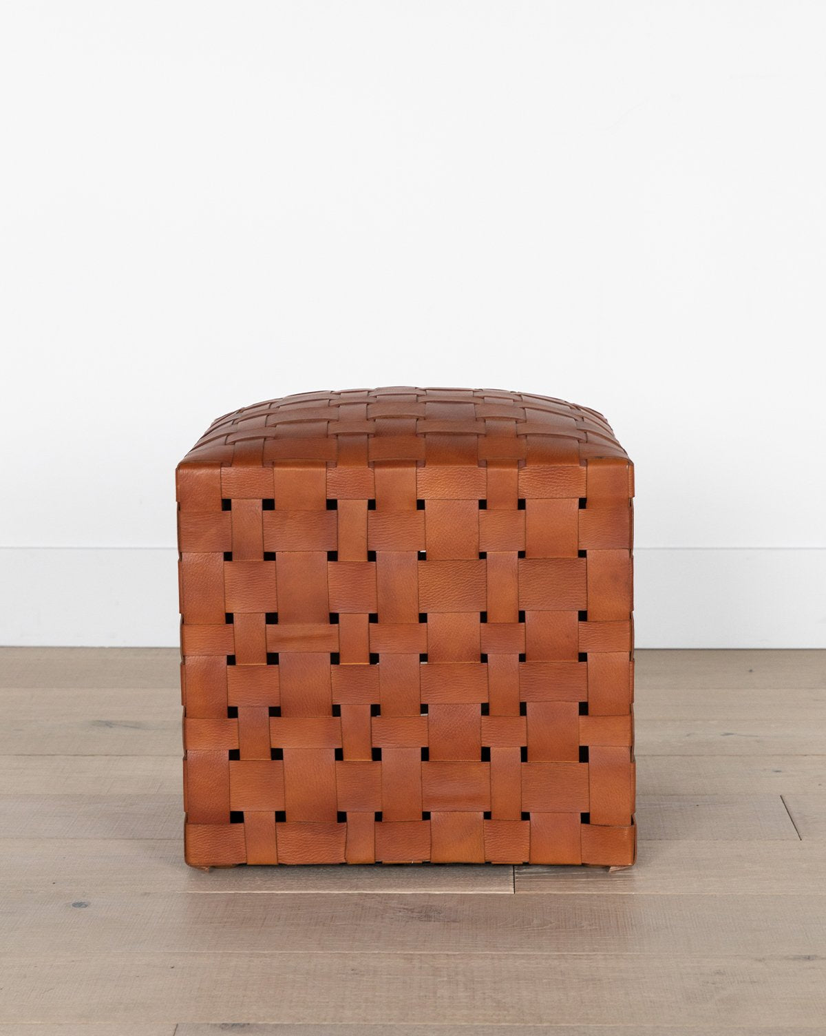With an intricate woven leather pattern our Ackley Leather Ottoman lends great texture and visual interest to your space. Refined in style, this ottoman enhances the design of your space while adding extra seating and comfort.
