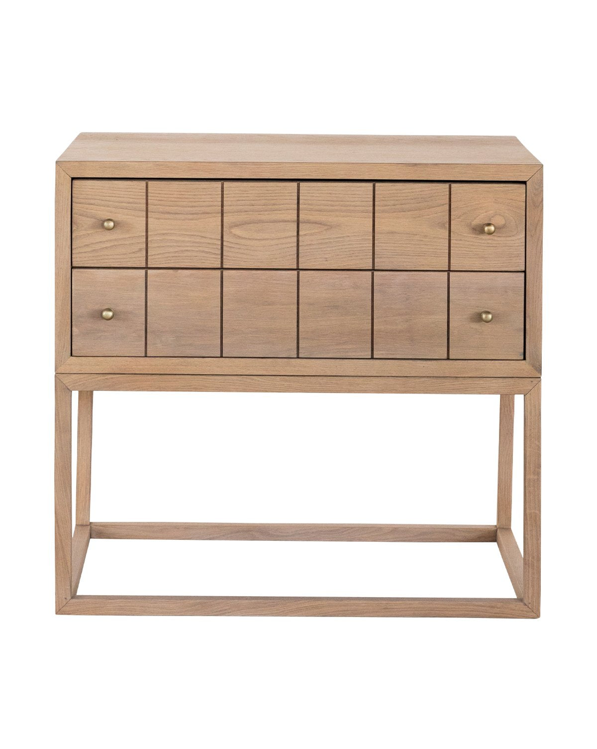 With a sophisticated, intricate design, our Huxton Nightstand looks good from every angle. During the design process of this beauty, we knew we wanted to create a piece that was both functional and detailed. We chose an etched grid pattern for the front drawers to draw interest, then centered the brass pulls on the end of each drawer for function. Finished with a unique boxed leg detail, this nightstand creates a light and airy moment in any bedroom, from traditional to modern.